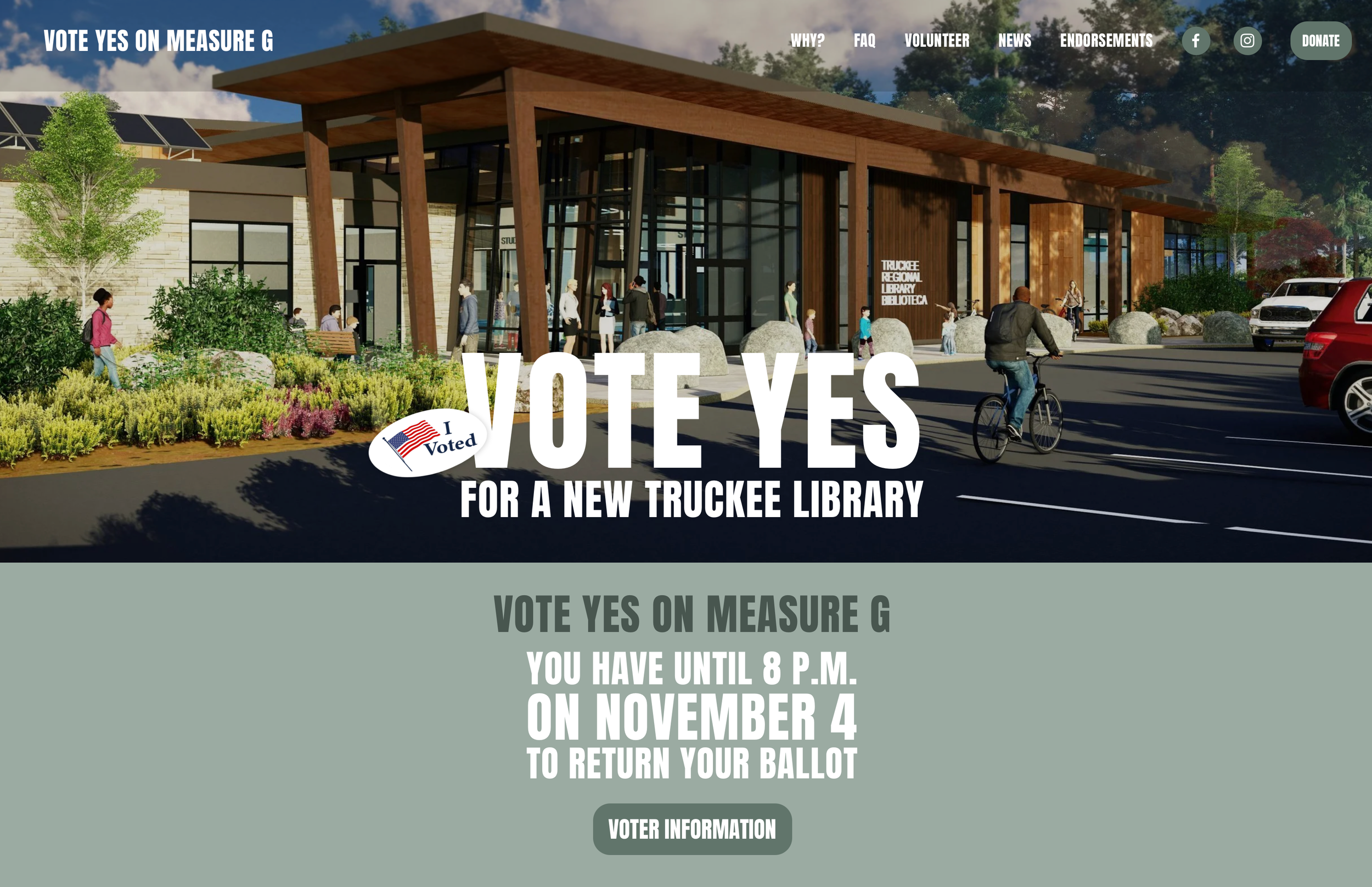 The Vote Yes on Measure G Digital Campaign (August–November 2025) supported a two-phase effort to increase awareness and drive voter turnout for a new Truckee Regional Library.